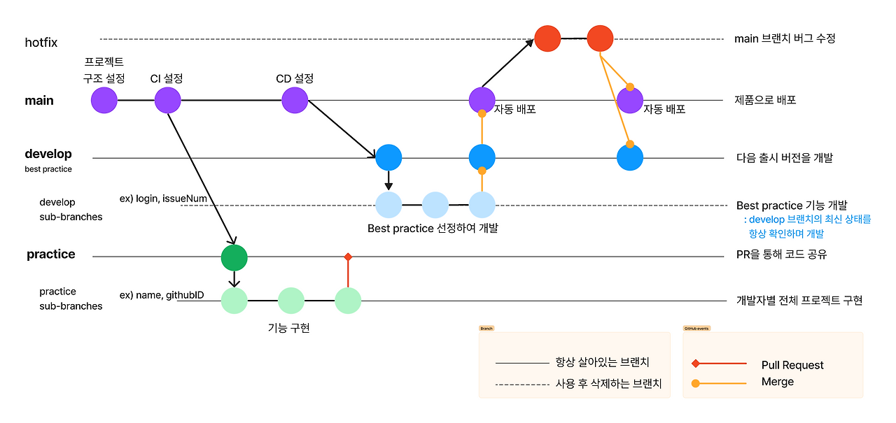 - Hotfix : 긴급한 버그 수정을 위한 브랜치입니다.